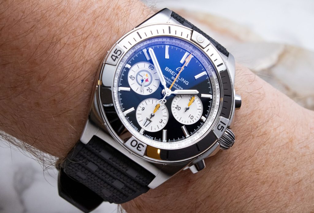 Whether you’re a dedicated fan or you’ve never watched a game, it’s hard not to be amazed by the sheer scope of the National Football League. As the largest sporting league in the United States, this 32-team sporting juggernaut is phenomenally lucrative, pulling in an estimated $12.87 billion in revenue in 2023. It’s also worth noting that while co-branding agreements with the overarching NFL organization are relatively common, getting each of the 32 teams in the league to agree on anything, much less an officially sponsored luxury watch collaboration, is an epic task of licensing, marketing deals, and legal wrangling. Although the recently announced Breitling Chronomat NFL Collection cleaves very close to the look and feel of the standard-production Chronomat, the high-profile positioning of these replica Breitling watches UK (and even more so the ongoing long-term exclusive licensing agreement between Breitling and the NFL) makes these watches the harbinger of a potential major marketing coup for the brand. On the wrist as well, the limited edition Breitling Chronomat NFL Collection tempers its gridiron spirit with a commendably judicious and refined approach to co-branding.